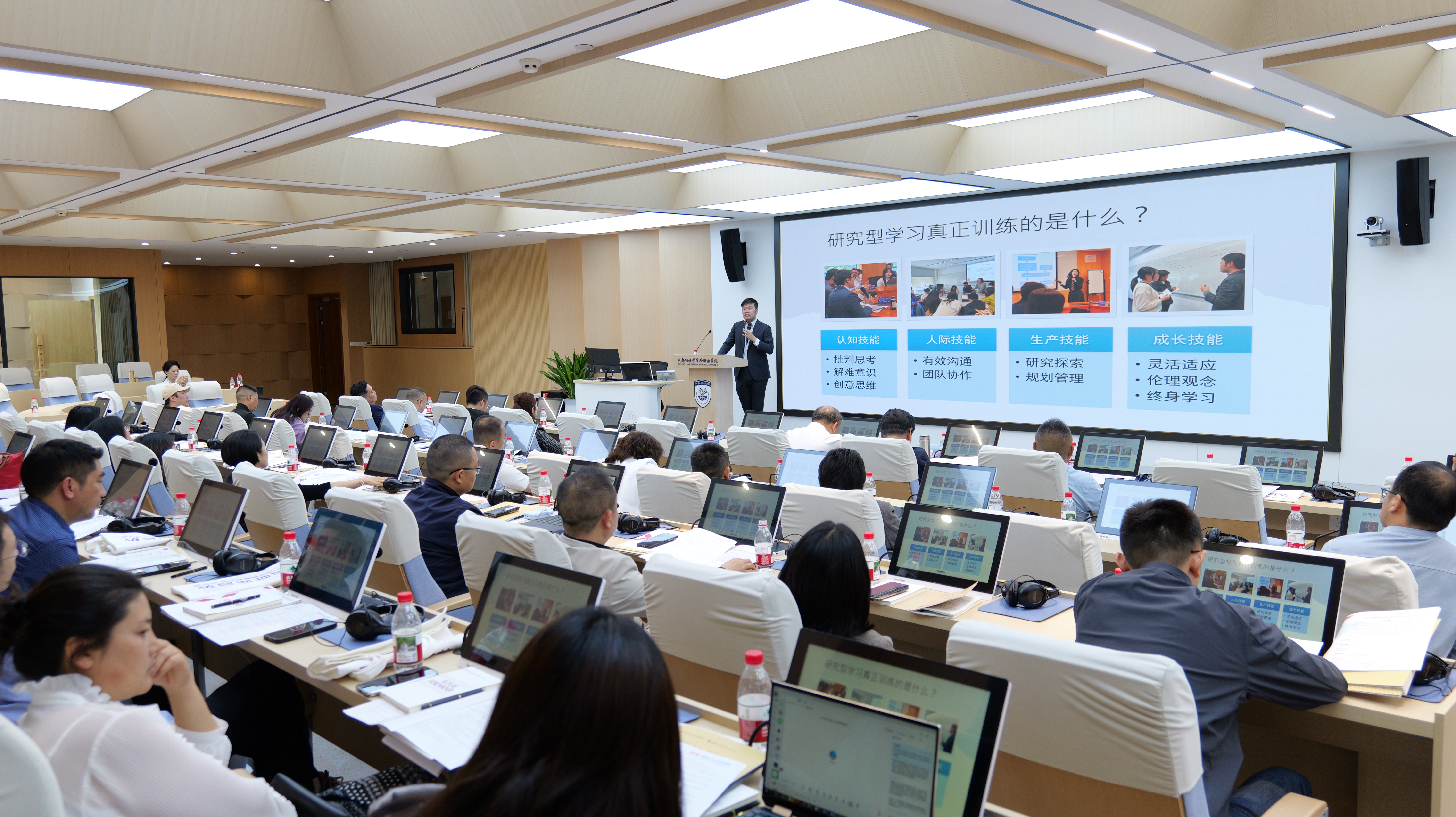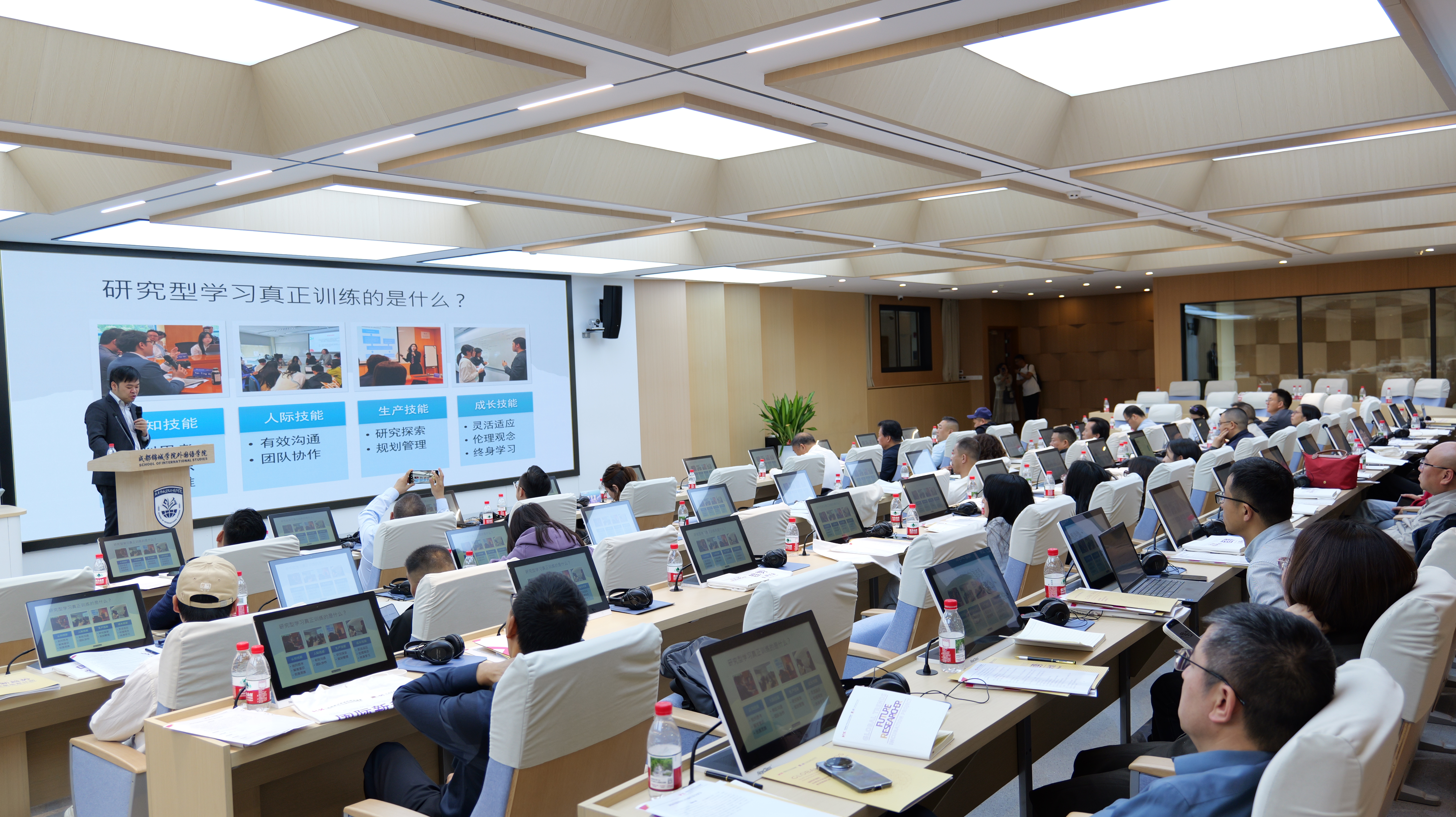 主旨发言环节,成都锦城学院招生处处长马继征分享了该校的育人路径与成果;香港青少年文化交流协会李雪梅会长发布《川港共融:教育实践整体框架》;香港中文大学沪港发展联合研究所潘学智助理所长、香港大学香港大学环球社会及可持续发展研究室梁骏楷总监分别从科研素养、SDGs 与 ESG 视角,解读了世界名校与港校对人才的核心要求;香港青年领袖促进会荣誉会长、国际青年商会中国香港总干事苏美芳分享了学校“学业—实习—就业”的育人闭环模式;四川师大教育发展集团卿捷副总经理则围绕国际化人才培养,畅谈了川港共融培养新时代人才的实践路径。